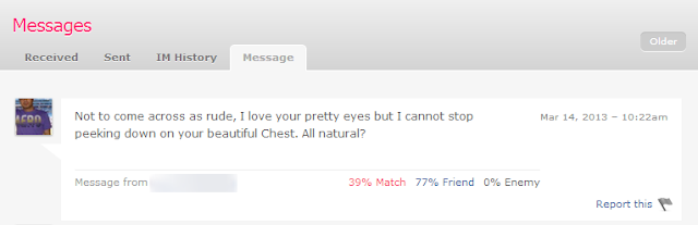 This guy sent me a message complimenting my hair and my nails. I don't know what he had in mind for them, but I don't think I care to find out.